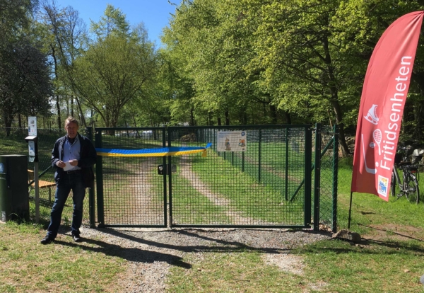 Invigningstalet hölls av Mats Dahlbom, fritidsnämndens ordförande, som också klippte det gulblåa bandet till den 800 kvadratmeter stora hundrastgården vid Idrottsvägen vid bostadsområdet Rosenkällan i Karlshamn.