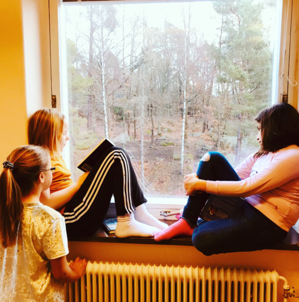 Under våren har hela skolan läst och arbetat med ett kapitel i veckan. Arbetet har sett olika ut beroende på elevgrupp. Vissa elever har fått texten berättad, andra har lyssnat till den och de äldre eleverna har läst texten själva. Då texten är ganska avancerad har vi läst och repeterat den flera gånger. Våra flerspråkiga elever har dels fått ta del av berättelsen på svenska, men också erbjudits att höra den på sitt starkaste språk. Detta har gjort att ALLA har kunnat vara lika delaktiga i de samtal som förts om texten.