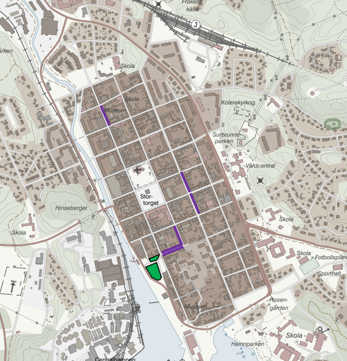 • Parkering med P-skiva där parkering tillåts under högst 4 timmar i följd införs på parkeringsytorna vid Tullgatan (Redartorget). Det är den nya parkeringsstrukturens gröna zon (se grönmarkerade ytor i kartbilden nedan).